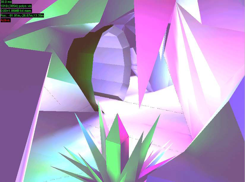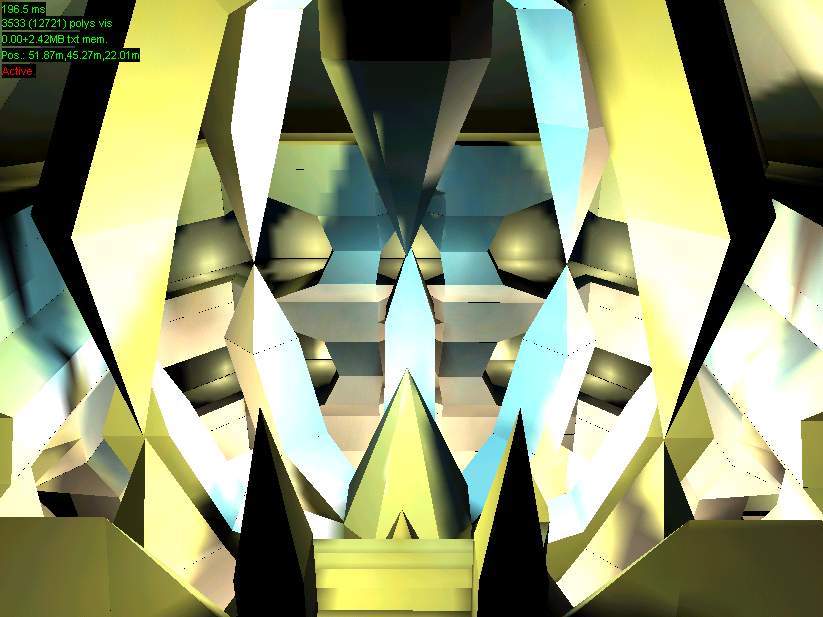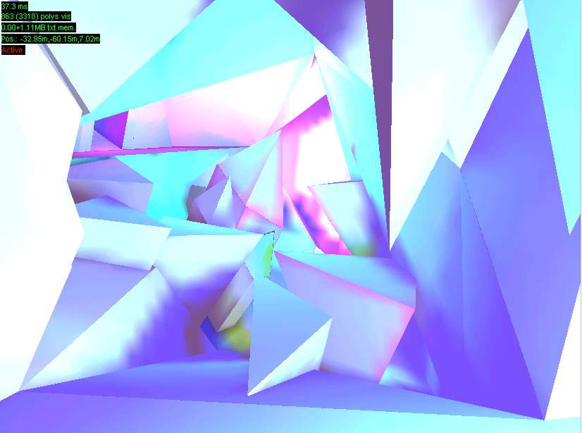 Crystals: The map‘s layout is a hollow torus. The tips of the tetrahedrons jut into the